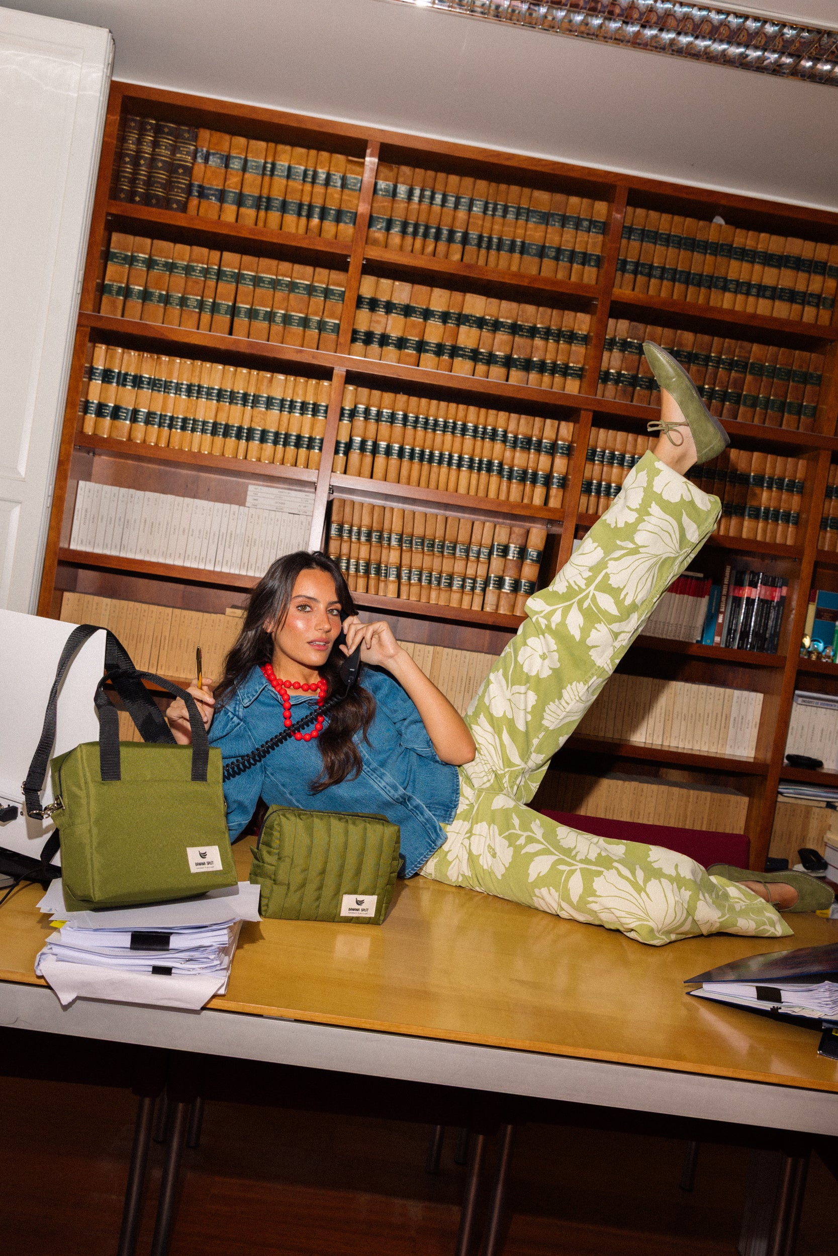 Tem duas alças curtas para transportar a lancheira na mão e uma alça ajustável para o ombro (removível).
